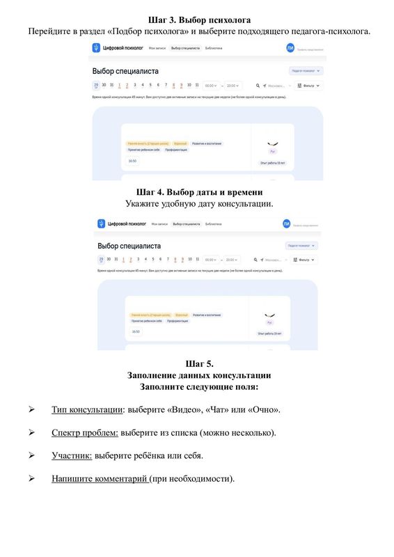 Пошаговую инструкцию по записи к интересующему психологу можно посмотреть в галереи ниже